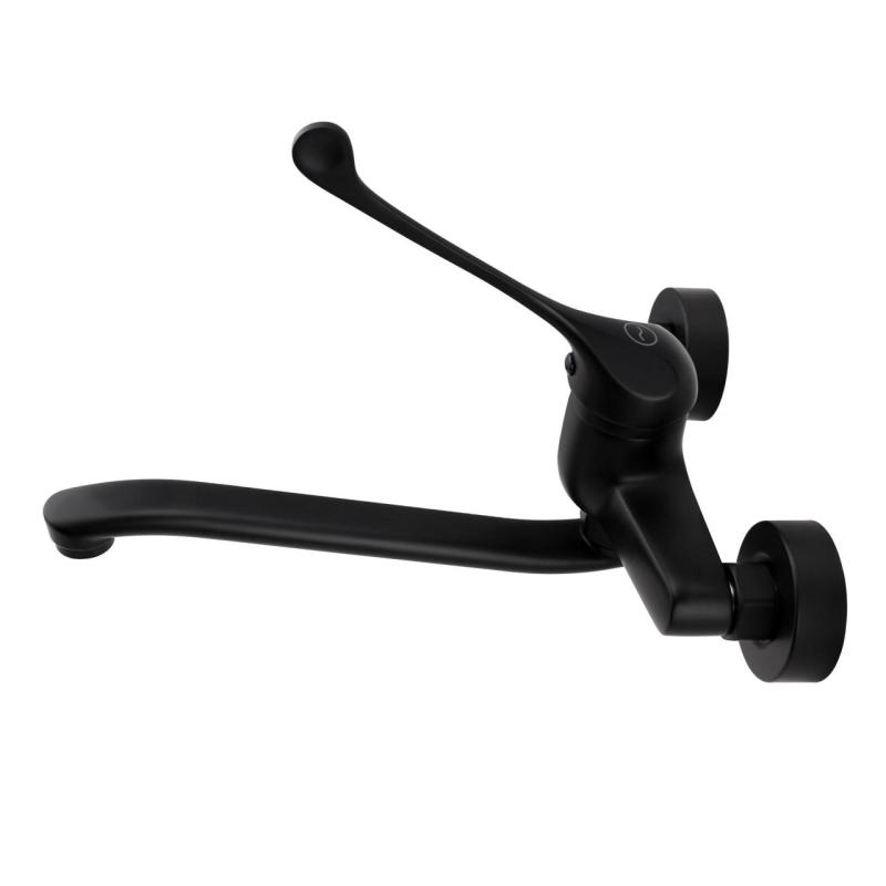 Aquanello Medic -køkkenarmatur til vægmontering har ikke kun et stilfuldt udseende takket være den sorte finish, men også praktiske fordele såsom et drejeligt udløb og en ekstra lang håndtag for brugervenlighed. Det højkvalitative messingmateriale og de keramiske skiver sikrer holdbarhed og smidig funktion.
