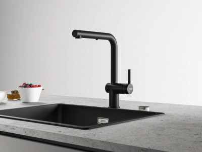 Franke Active L matt black kitchen tap with pull-out hand shower 115.0653.382