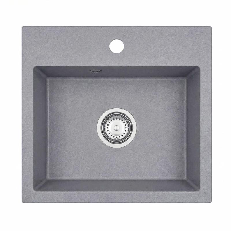 Graniteland Nera Granit Vask 45x42 cm Grå Overflade med hanehul og rustfri stålstik 1208971436