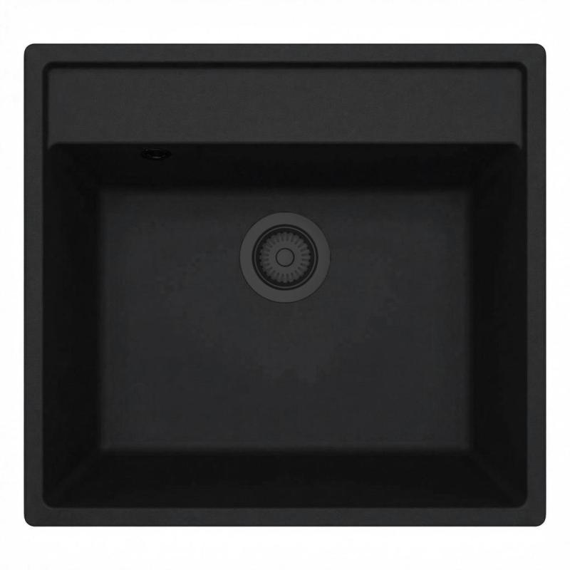 GraniteMy Bremen granite kitchen sink 53x50 cm black inset undermounted and flush mounted with faucet hole bank 1208952256
