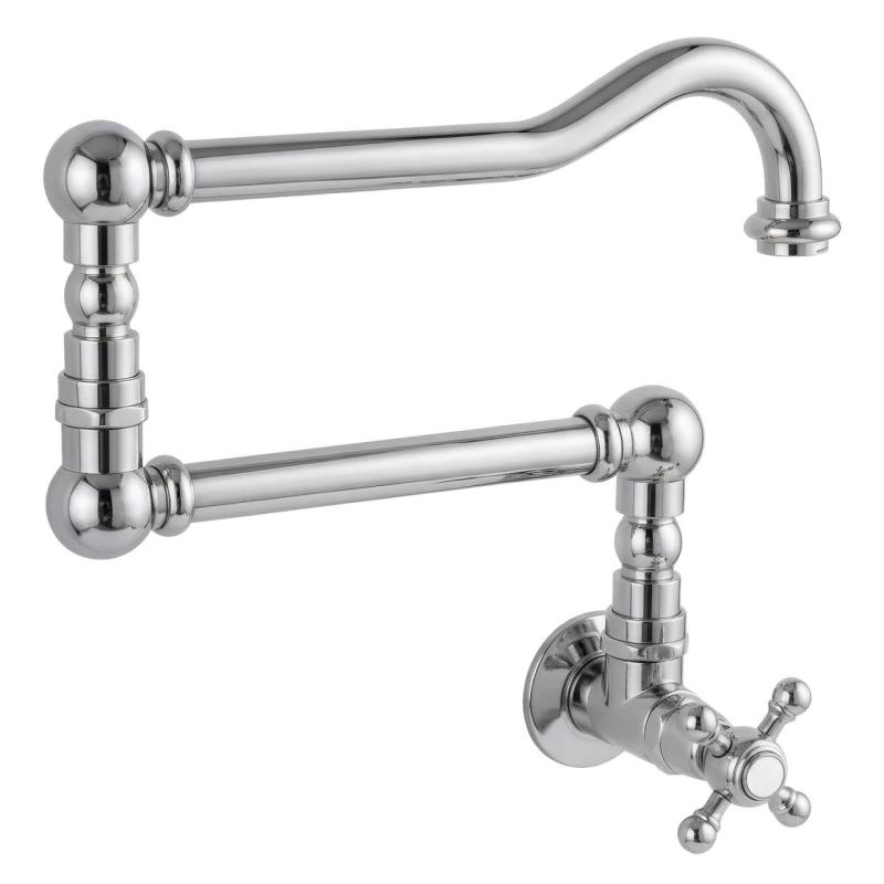 The PB classic built-in wall-mounted basin tap with star knob for cold water and long swivel spout is a beautiful addition to your kitchen or bathroom. With its nostalgic look and chrome finish, this tap adds a touch of elegance to any space.